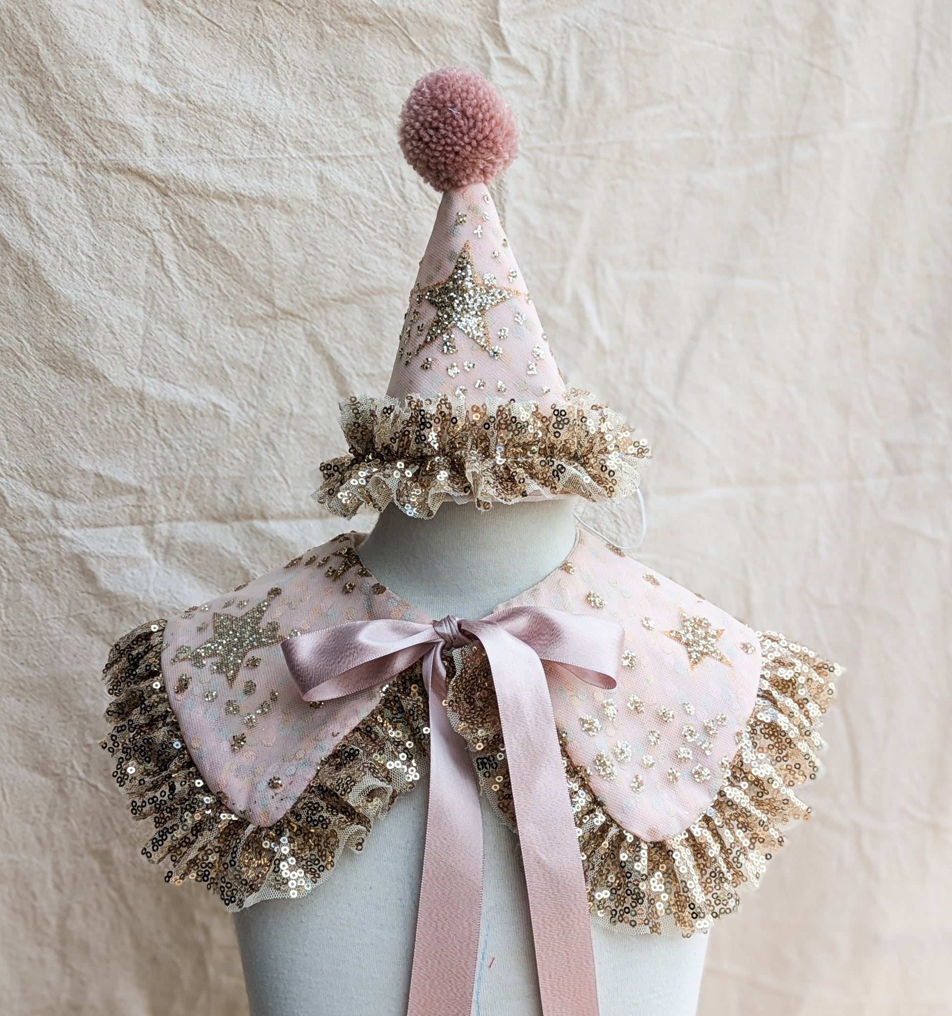 A gorgeous celebration hat and collar that can be worn each birthday again and again and for special occasions and fancy dress too. One size fits most and the hat can be personalized with a number or initial if desired just leave a comment at checkout.