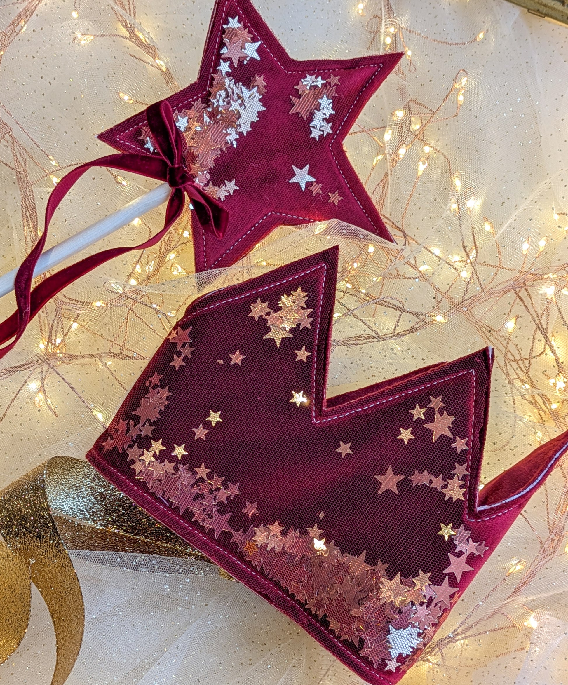 These special edition Christmas sparkle crowns are crafted in the softest velvet....with mesh overlay and stars that actually move as your little one plays they will inspire adults and children alike! Perfect for Christmas and beyond!